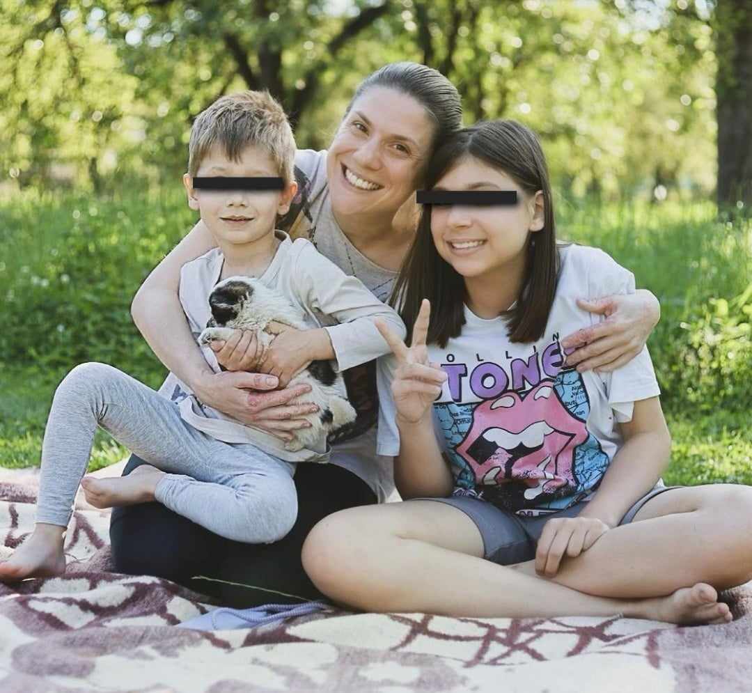 Tily Niculae împreună cu fiica și băiețelul ei, în parc