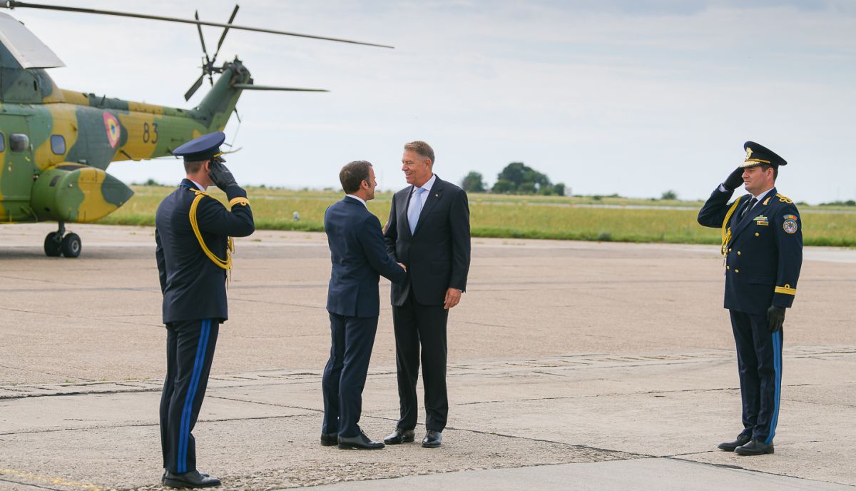Cei doi șefi de stat au avut discuții tete-a-tete și convorbiri oficiale, iar președintele francez se va întâlnii și cu soldații aflați la Baza Kogălniceanu.