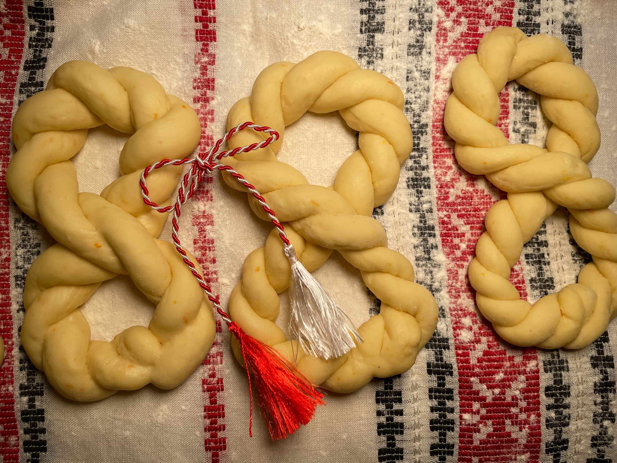 – Ulterior, împărțim aluatul în 14-15 bucăți, în funcție de cât de mari dorim să fie mucenicii. Modelăm fiecare bucată de aluat în șnururi pe care le împletim în forma cifrei 8. Le așezăm în tava tapetată cu hârtie de copt la distanțe de 2-3 cm. Lăsăm cornurile la odihnit, acoperite cu un ștergar, 30-40 de minute.