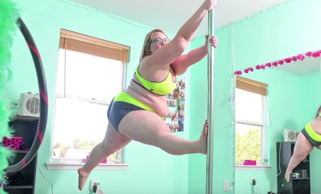 Eda Marbury are 25 de ani, sufera de obezitate, insa se simte extrem de bine in pieea ei. Desi are aproape 150 de kilograme, tanara adora sa danseze la bara si a ajuns sa isi monteze una chiar si in apartamentul ei.
