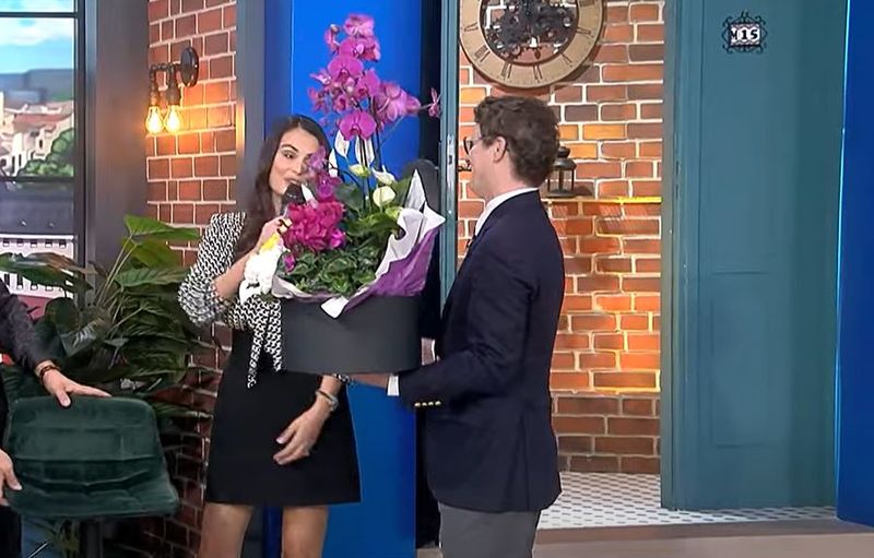 Ei bine, moderatorul TV i-a pregătit o surpriză de proporții Ancăi Serea, așa că în platoul de televiziune și-a făcut apariția și Adi Sînă, îmbrăcat la costum și cu un buchet mare de flori, șatena fiind plăcută surprinsă: „Vorbești despre nunta noastră fără mine?”, a