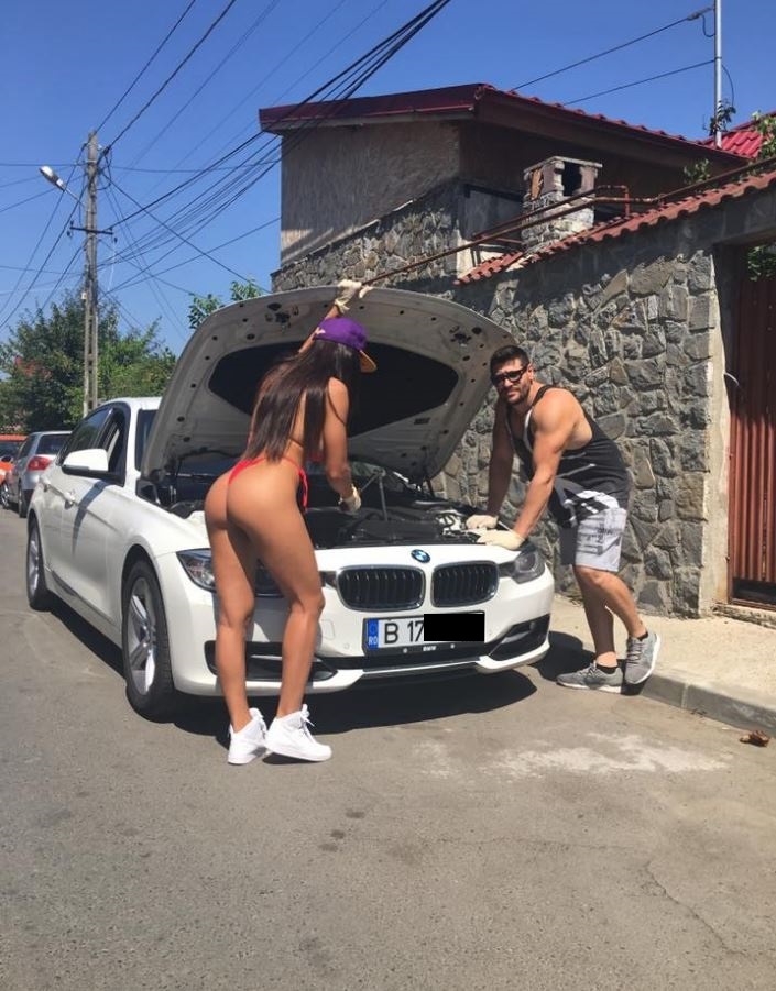 Ei bine, lesne de inteles ca o „femme fatale” este si extrem de indrazneata si lipsita de pudoare. Topita de caldura, Larisa a iesit din casa in costum de baie…tanga in urma cu cateva zile. Cu aceasta tinuta de plaja, sexoasa animatoare a dat o fuga la un service auto, sa-si repare masina, un bolid nemtesc in voga.