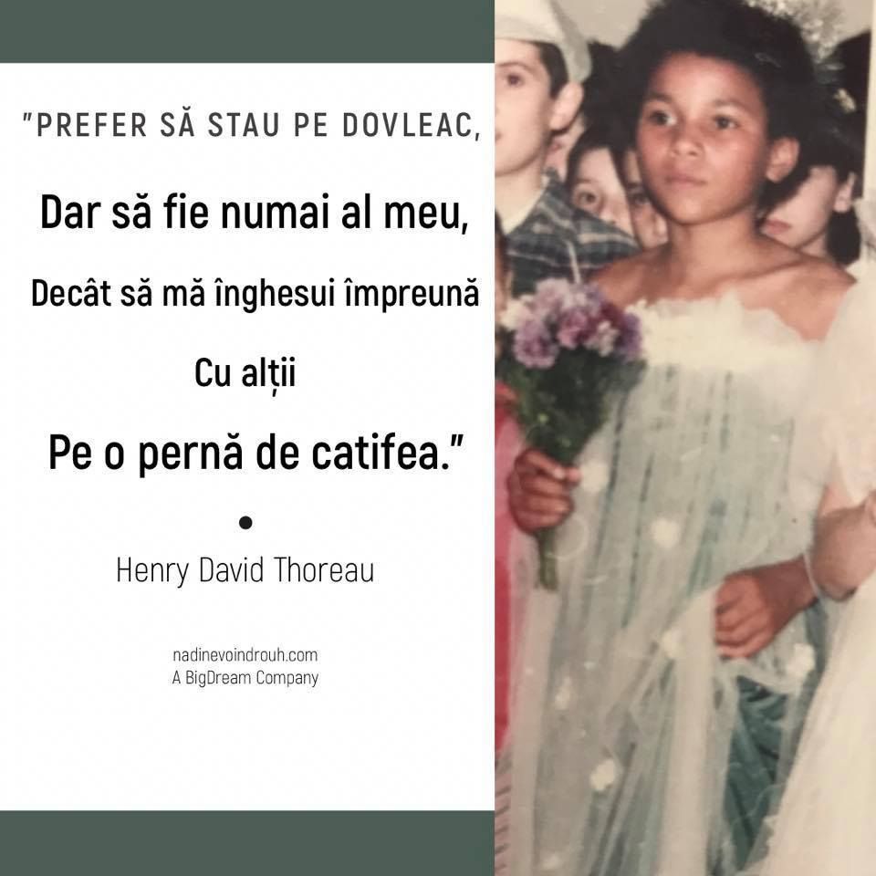 “Am vrut sa ma albesc toata copilaria, ca sa se joace copiii din fata blocului cu mine. Stateam sub o salcie toata ziua. Eram convinsa ca umbra ei ma va albi. Voiam sa fiu pe paturici cu copiii si sa ne prefacem ca vindem si cumparam diverse, cu bani din frunze.