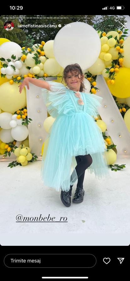 „Acum mergem spre locația unde va avea loc petrecerea de botez. Finuțul nostru, David Liam, a fost foarte cumințel la botez. I-a plăcut foarte mult, acum mergem să ne distrăm la petrecere. Am pregătită o altă ținută pentru petrecere, dar nu știu dacă mă mai schimb, mă mai gândesc, pentru că vremea e un pic capricioasă, iar ținuta este destul de subțire și vedem acolo, la fața locului.”, a mai spus Cristina Șișcanu în mediul online.
