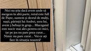 „Nici nu știu dacă avem unde să mergem în altă parte, totul este full (n.r.: plin) de Paște, suntem și destul de mulți, nașii, părinții lui Andrei, sora lui, avem trei bebeluși în grup... Mucegaiul este nociv, mai ales pentru cei mici, iar pe jos nu pare prea curat... Nimic nu pare curat... Voi ce ați face în situația noastră?