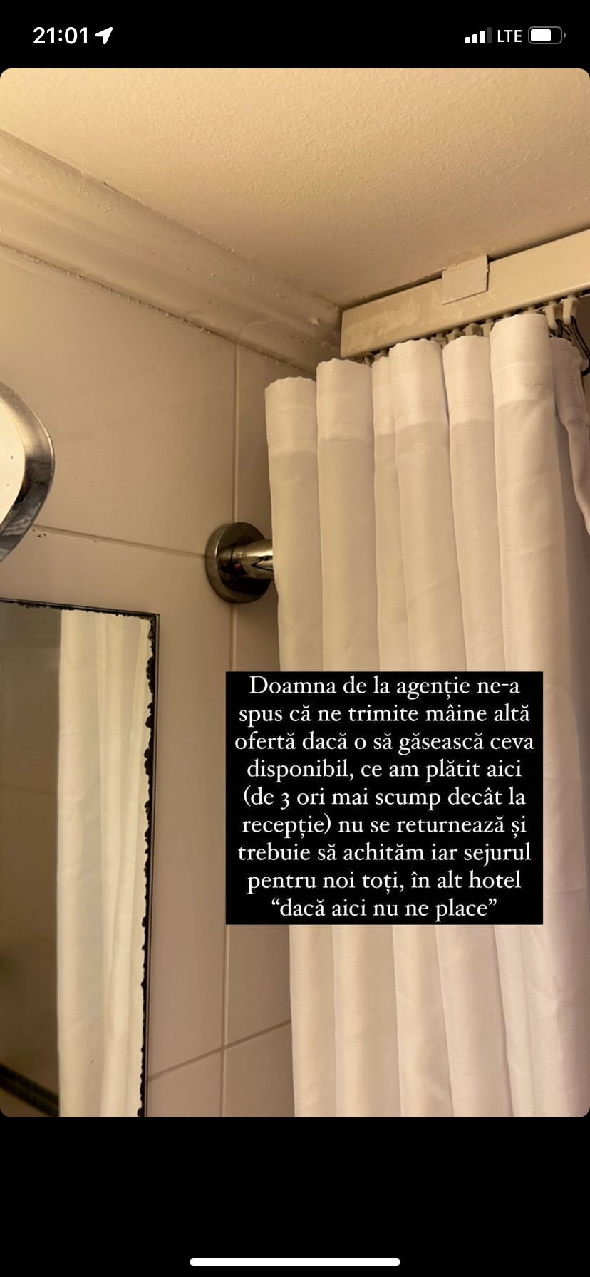 Doamna de la agenție ne-a spus că ne trimite mâine altă ofertă dacă o să găsească ceva disponibil, ce am plătit aici (de trei ori mai scump decât la recepție) nu se returnează și trebuie să achităm iar sejurul pentru noi toți, în alt hotel, dacă aici nu ne place.