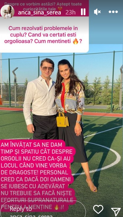„Am învățat să ne dăm timp și spațiu cât despre orgolii, nu cred că-și au locul când vine vorba de dragoste! Personal, cred că dacă doi oameni se iubesc cu adevărat nu trebuie să facă niște eforturi supranaturale pentru a menține flacăra”, a scris Anca Serea pe InstaStory.