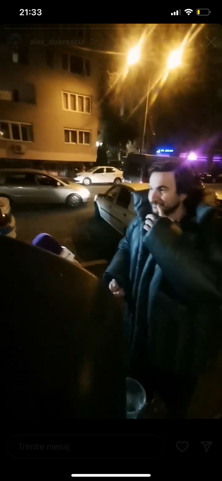 La fața locului s-au deplasat două echipaje de poliție care au încercat să oprească cheful, însă niciunul dintre petrecăreți nu au vrut să renunțe. Ba chiar Alex Dobrescu pare amuzat de întreaga situație, la fel și prietenii săi care au filmat mai multe momente cu oamenii legii și le-au postat pe rețelele de socializare. În cele din urmă, fostul iubit al Cristinei Cioran s-ar fi ales doar cu un avertisment din partea agenților.
