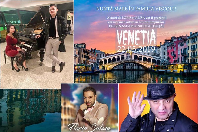 „Nuntă mare în familia Viscol! Alături de Loris şi Alisa vor fi prezenţi cei mai mari artişti ai tuturor timpurilor, Florin Salam şi Nicolae Guţă. Evenimentul va avea loc la Venezia, pe 22 mai”, au anunţat familiile implicate.