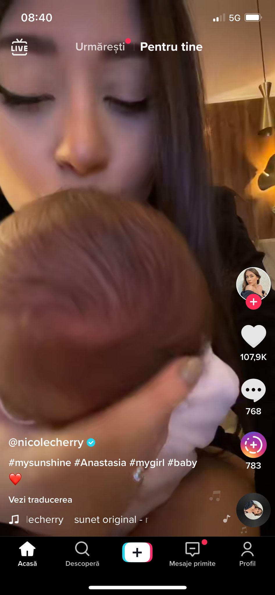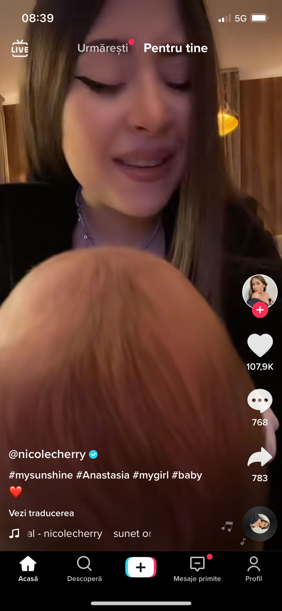 Nicole Cherry este extrem de fericită, iar acest lucru este vizibil în videoclipul pe care l-a distribuit pe contul ei de Tik Tok. În clipul video, Nicole Cherry își tine fiica în brațe, o legănă, iar în aceelași timp îi fredonează o melodie de de dragoste intitulată „sunshine”, iar traducerea acestui cântec este „rază de soare„. Următoarele versuri pe care Nicole Cherry i le-a fredonat fiicei ei au fost: „Ești raza mea de soare, singura rază de soare. (…) Tu mă faci ferictă”.