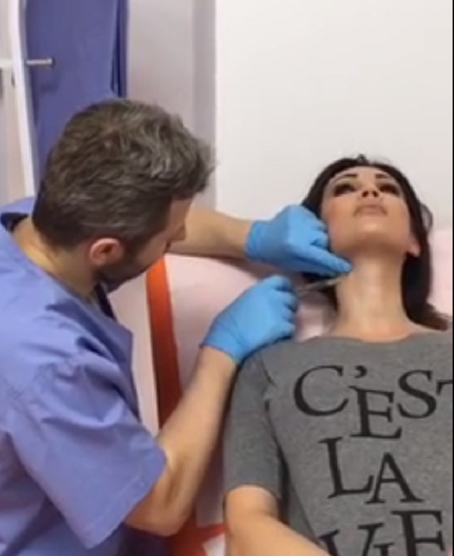 ”Vreau să încerc pe gât, vreau să văd cât este de dureros”, a mărturisit vedeta, care s-a filmat în timpul tratamentului cosmetic, în timpul unei intervenţii de mezoterapie.