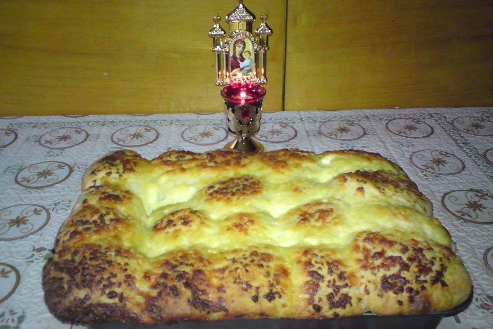 Compoziţia astfel obţinută se aşează într-o tavă, se spune rugăciunea „Tatăl nostru” ca atunci când facem pâine, cozonaci, chec, ca să crească, să fie de folos, roditor, aşa cum trebuie să fie şi viaţa noastră, apoi se bagă la cuptor pentru 20-25 de minute.