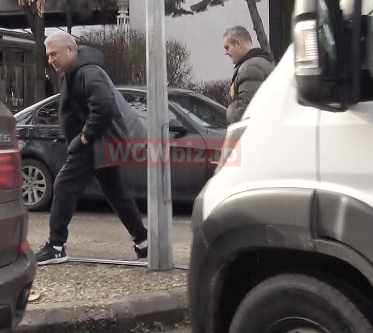 În pas alert, vărul lui Gigi Becali a intrat în curtea restaurantului. Singurele care l-au făcut să se întoarcă au făst cele câteva claxoane din stradă, însă nu a stat prea mult pe gânduri și a mers în incinta localului.