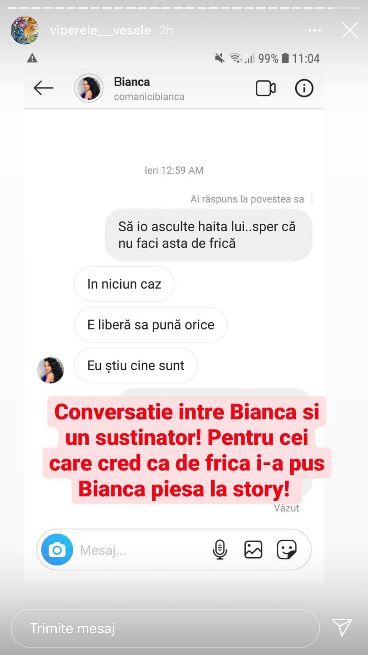 În timpul live-ului, Andreea a primit un comentariu prin care era amenințată cu bătaia dacă se mai ia de Andrada în cadrul emisiunii: „Dacă te mai iei de Andrada, te fac bucăți când te prind în București!”.