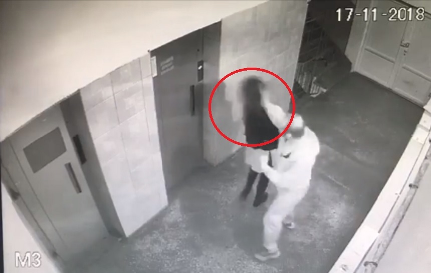 Agresiunea tinerei de 20 de ani, din Alba Iulia, a fost surprinsă de camerele de supraveghere din blocul unde a fost bătută.