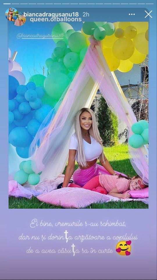 „Ei bine, vremurile s-au schimbat, dar nu și dorința arzătoare a copilului de a avea căsuța sa în curte”, este mesajul scris de Bianca.