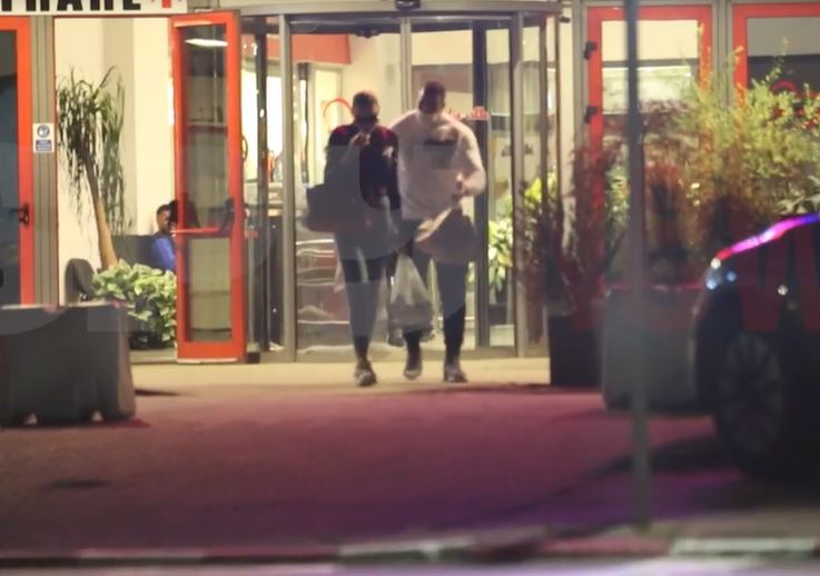 În tot acest timp, blondina a așteptat pe troturar și i-a făcut loc iubitului să-și lase mașina, iar apoi au intrat în clădire împreună. Ei au mai fost văzuți la ieșire, cârând mai multe pungi care nu păreau a fi prea ușoare. Apoi, au plecat cu mașina lui Alex Bodi.