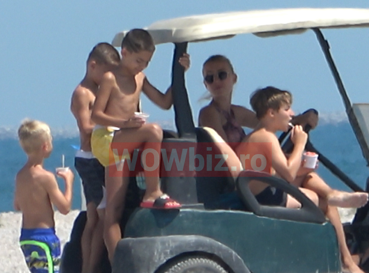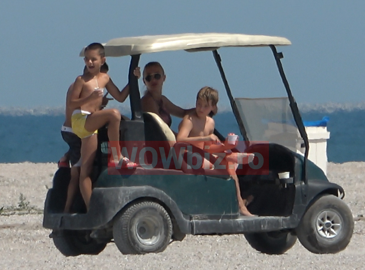 Vedeta a fost fotografiată în timp ce îi duce pe copii la malul mării cu o mașinuță de golf.
