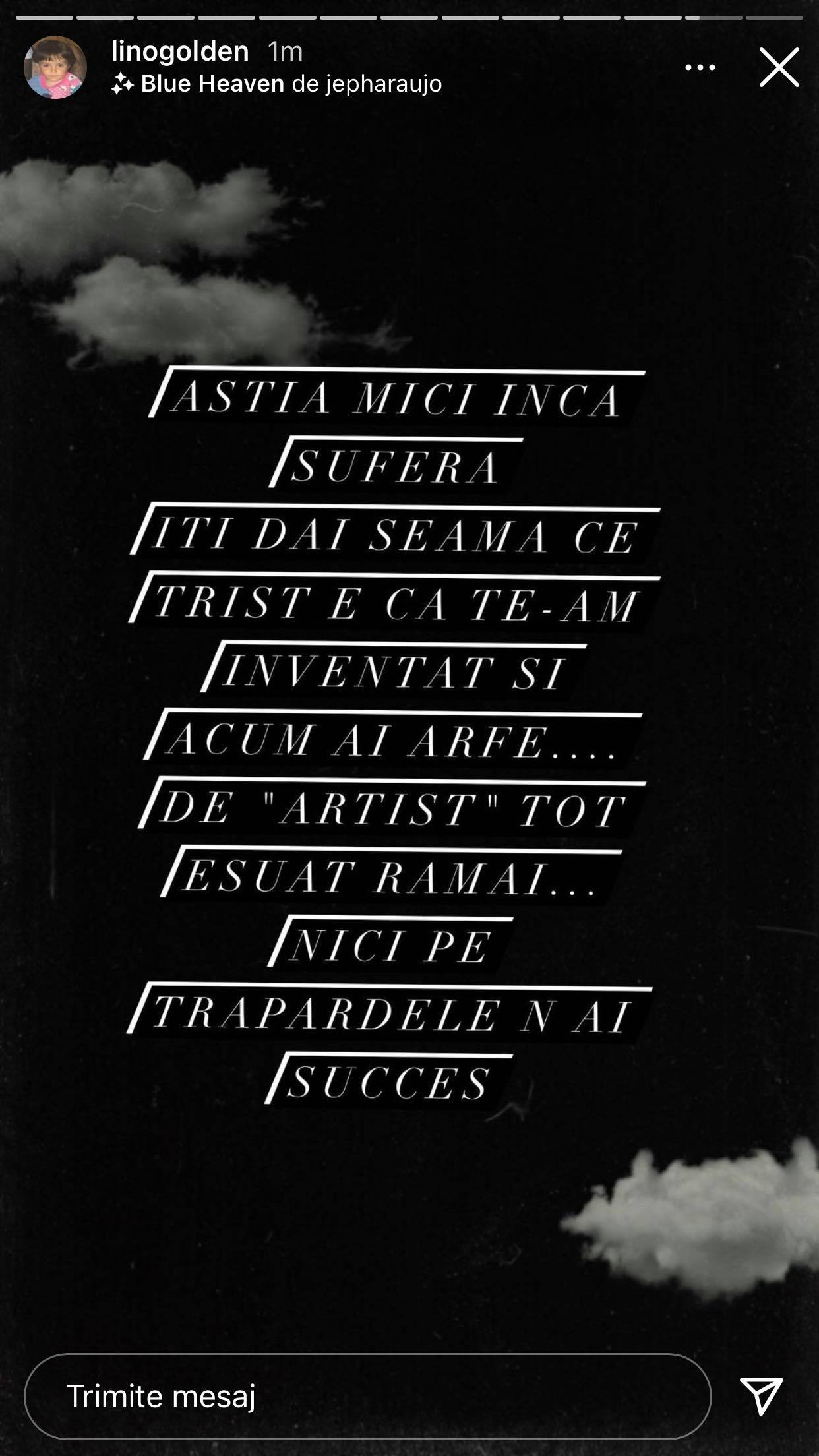 Nu te duce ficatul dacă tot vorbit de trap, te rog ascultă-mi sfatul, lasă-te ești cel mai slab”, adaugă Jo Klass, cel cu care Lino a avut un scandal în toată regula.