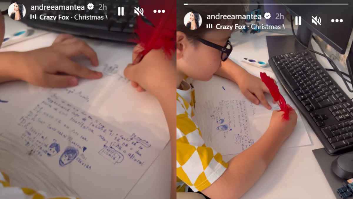 ”A zis că nu mai face nicio scrisoare pentru că știe că nu a fost cuminte și totuși… a luat pana magică a lui Harry Potter și…”, a scris Andreea Mantea, pe Instagram.