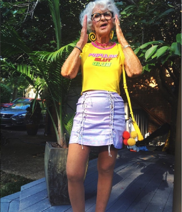 Poarta haine foarte colorate si tineresti. In fuste scurte, costume de baie, bunicuta are o atitudine care i-a cucerit pe internauti.