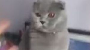 Motanul nu voia în ruptul capului să se dea jos, cu toate că stăpâna a încercat să-l convingă în fel și chip.