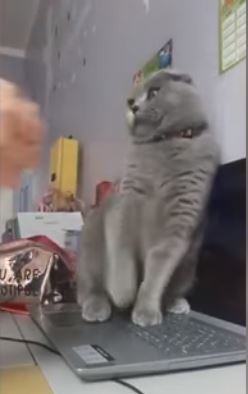 Motanul, din rasa Scotish Fold, nu s-a dat dus nici după ce stăpâna lui, Ştefania, de 11 ani, a încercat să-l mute cu forţa. Ștefania a încercat în fel și chip să-l dea pe Tontonel jos de pe laptop și chiar încerca să-i spună despre cum doamna profesoară se va supăra pe ea dacă nu va intra la oră. Însă pisica își dorea mai multă atenție și joacă, cel mai probabil, nici gând să o lase pe stăpână să stea cu ochii în laptop.