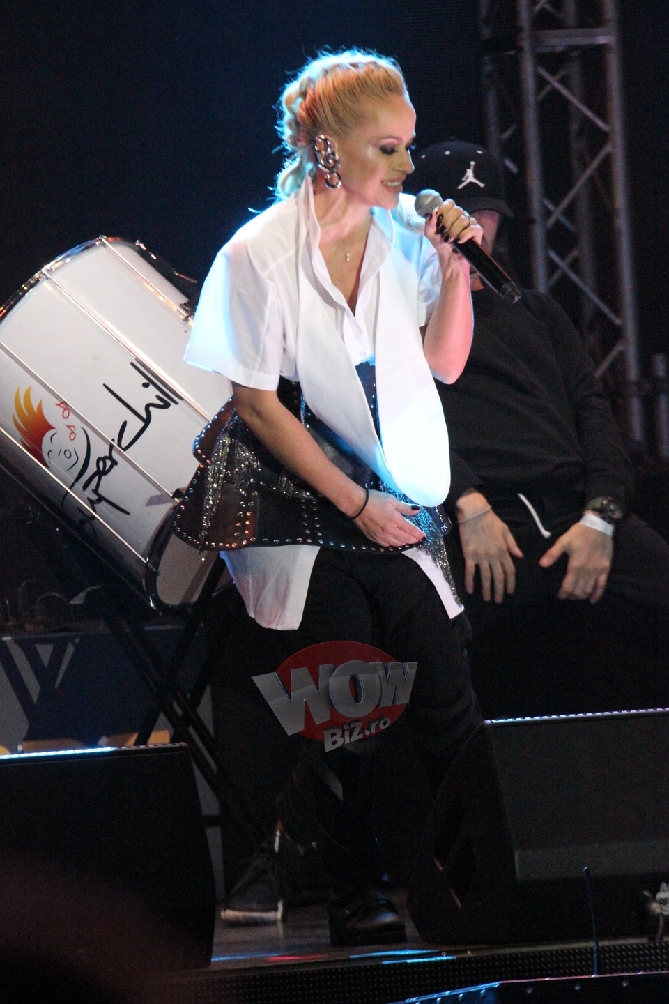 “Mai am dureri de spate pentru ca sunt eu sensibila si am o problema la coloana… Am o lordoza care ma mai sacaie din cand in cand si din cauza faptului ca port mereu tocuri si ca dansez pe tocuri foarte mult si ca pozitia mea, unghiul meu este schimbat din cauza tocurilor pe care le port, de multe ori, dupa concerte se mai intampla sa ma doara spatele.