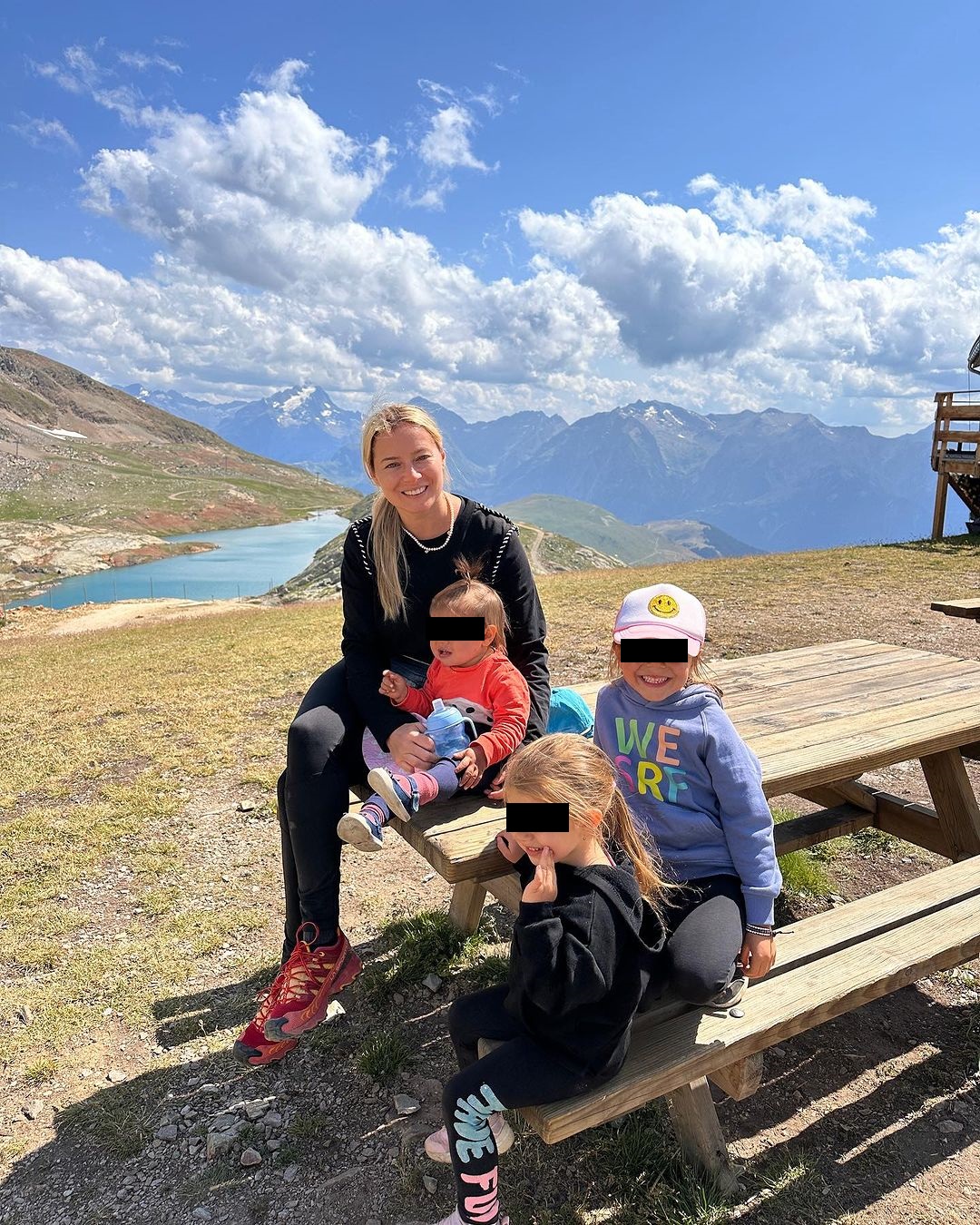 Suntem în Alpii francezi și tocmai ce am făcut un picnic pe „Lac Blanc”. Copiii se țin bine la drumeții, au energie și dacă își pierd răbdarea sau obosesc le distragem atenția cu jocuri, cântece și povești. Funcționează cam de fiecare dată. Știu că în România este foarte cald, dar vă transmitem gânduri bune și o gură de aer proaspăt de munte.”