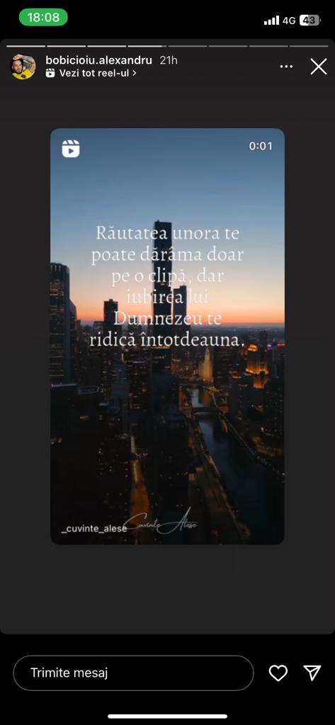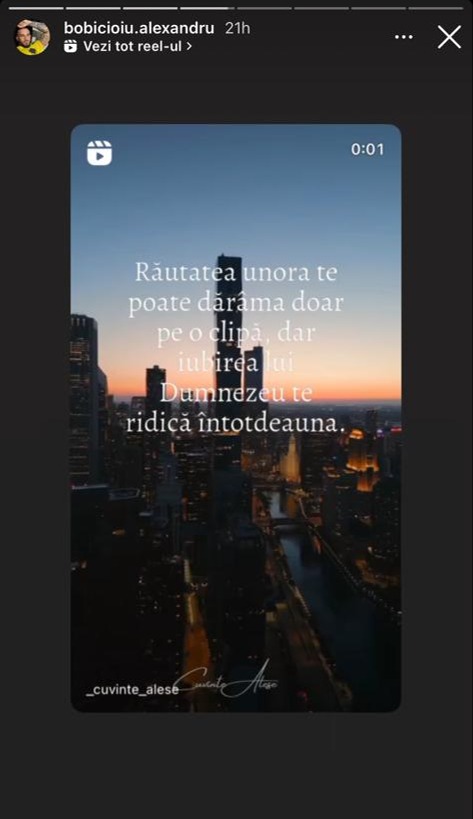 „Răutatea unora te poate dărâma doar pentru o clipă, dar iubirea lui Dumnezeu te ridică întotdeauna.”, a mai scris Alex Bobicioiu în mediul online.
