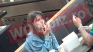 Actrița nu părea să fie îngrijorată sau deranjată că o pot vedea cei din jur. Aceasta era foarte atentă la discuția cu prietenul ei și a continuat să mănânce cu poftă ce avea în față.