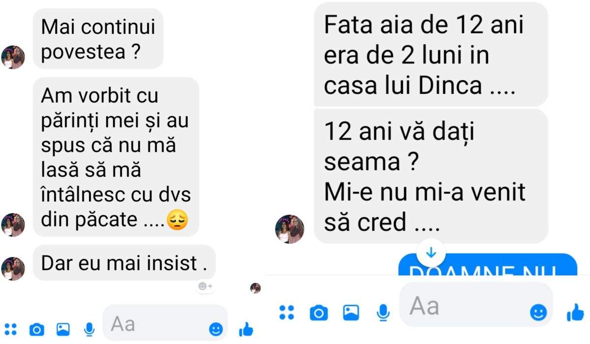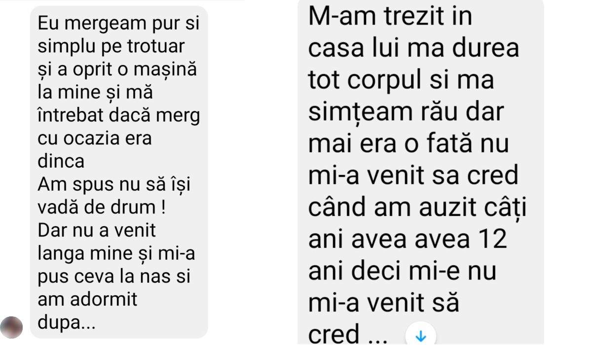 “Mă cheamă Maria, am 17 ani şi acum un an eu am fost victima lui. Nu am spus nimănui pentru că îmi este frică, dar pentru prima oară o să vă spun povestea mea. Eu mergeam pur şi simplu pe trotuar şi a oprit o maşină lângă mine şi m-a întrebat dacă merg cu ocazia. Era Dincă. Am spus nu, să îşi vadă de drum. Dar a venit lângă mine şi mi-a pus ceva la nas şi am adormit după… M-am trezit în casa lui, mă durea tot corpul şi mă simţeam rău, dar mai era o fată.