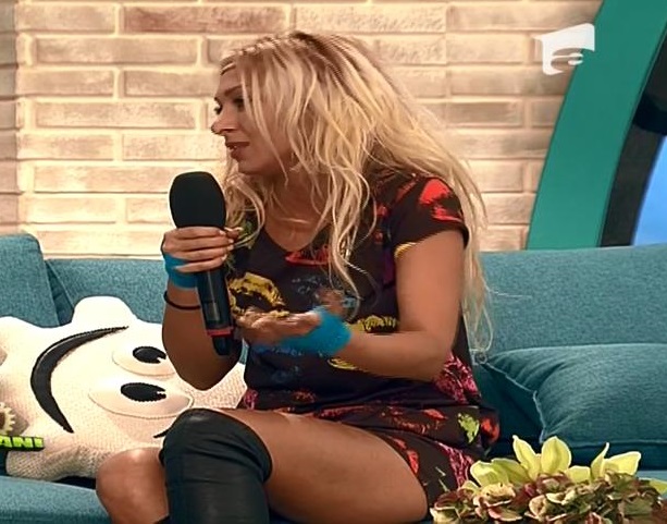 O cantareata blonda, energica si pusa pe sotii a facut un adevarat spectacol la matinalul prezentat de Razvan si Dani. Mirela Didei, cu numele de scena Mi, a purtat o rochie foarte scurta care a oferit privelisti interesante pentru prezentatori si operatori. La un moment dat, Dani i-a atras atentia.