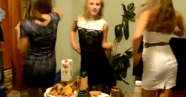 Fata a organizat o petrecere la ea acasa, alaturi de prietenii ei. Au dansat, au petrecu si au baut alcool, iar la sfarsitul chefului, fata si-a rugat una din prietene sa o pozeze goala, acoperita doar de un halat de bucatarie roz.