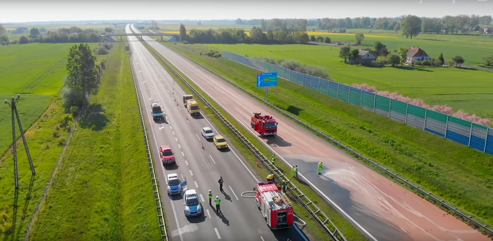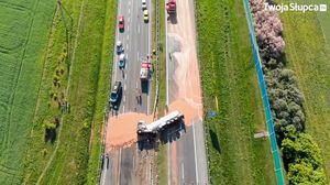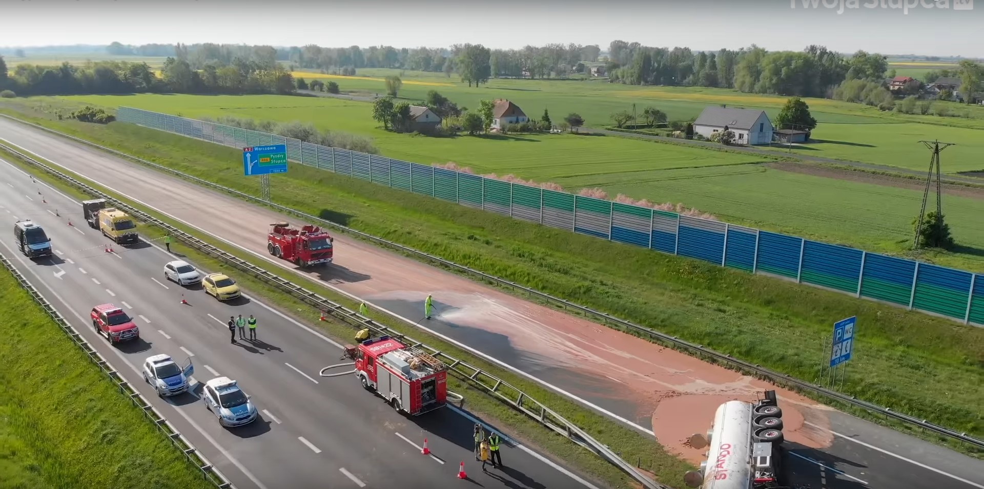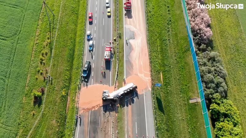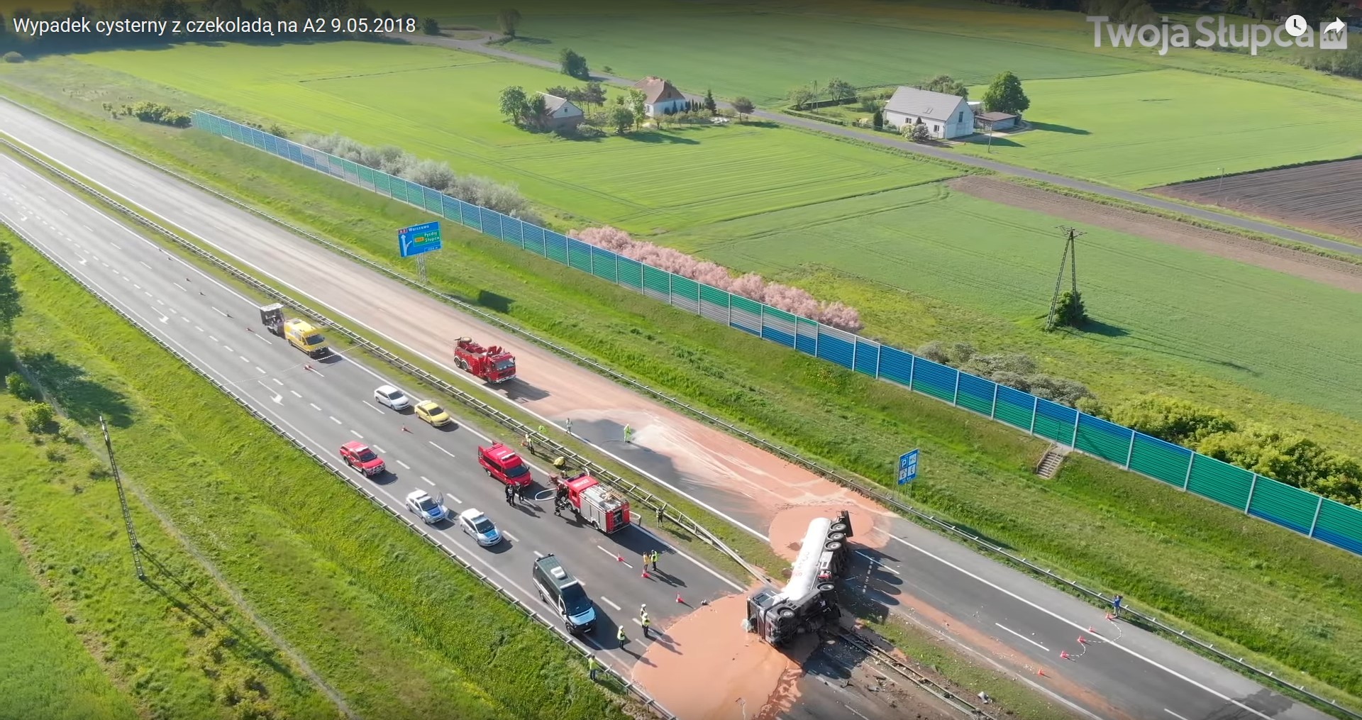 Soferul unei cisterne a adormit si a pierdut controlul volanului. Automarfarul a blocat complet traficul pe autostrada din Polonia, inundand ambele sensuri de circulatie cu… ciocolata.
