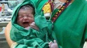 O poză cu un nou născut a devenit virală pe internet. Motivul nu este bebeluşul, ci ce se află în spatele lui. Mama lui este întinsă pe pat, imediat după ce a născut, total nepregătită pentru fotografii.