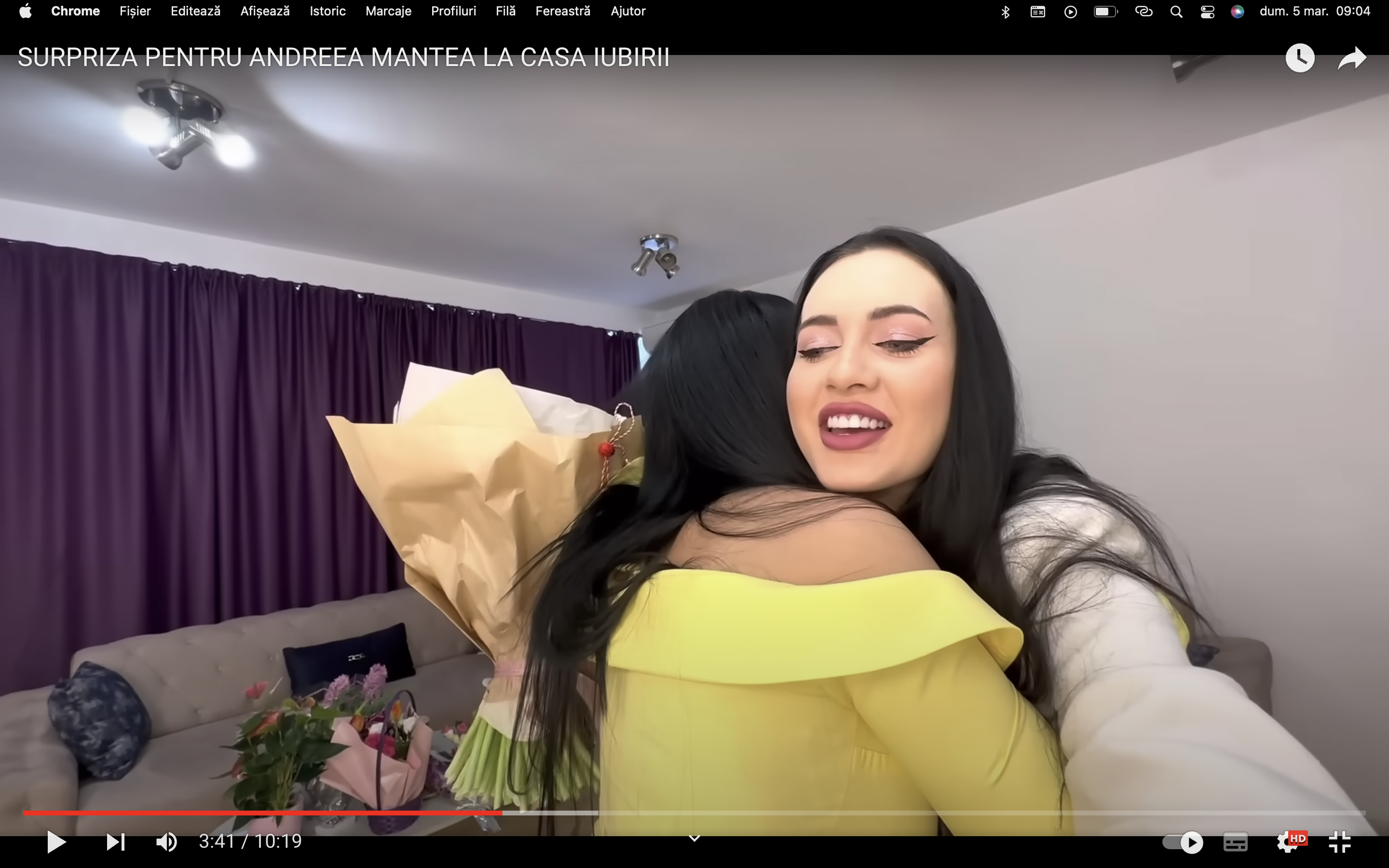 „Astăzi vreau să pregătesc o surpriză pentru cineva, pentru unul dintre cei mai importanți oameni din viața mea și anume Andreea Mantea, căruia i-am cumpărat ceva, le am acolo în spate. O să vi le arăt, mă grăbesc un pic pentru că este 3 fără 5 și ea la fix o să aibă pauză și ar fi bine să o prind cât mai mult acolo. Fug, conduc cât de repede pot, în limita posibilităților legale și sunt așa entuziasmată și cu chef de viață. Asta este planta pe care i-am luat-o Andreei, trebuie s-o șterg un pic și i-am mai luat aici un cadoaș micuț, frumos, elegant și aici ceva prăjiturică. Sper să nu se supere că i-am luat prăjiturică, pentru că știu că ea nu mănâncă așa dulce. Și ce crezi? E ceva turcesc. Legat de plantă, am preferat să-i iau așa (n.r. – ghiveci) ca să-i rămână amintire. Dacă-i luam buchet, nu-i rămânea amintire.”, a spus Bianca Comănici în începutul vlogului.