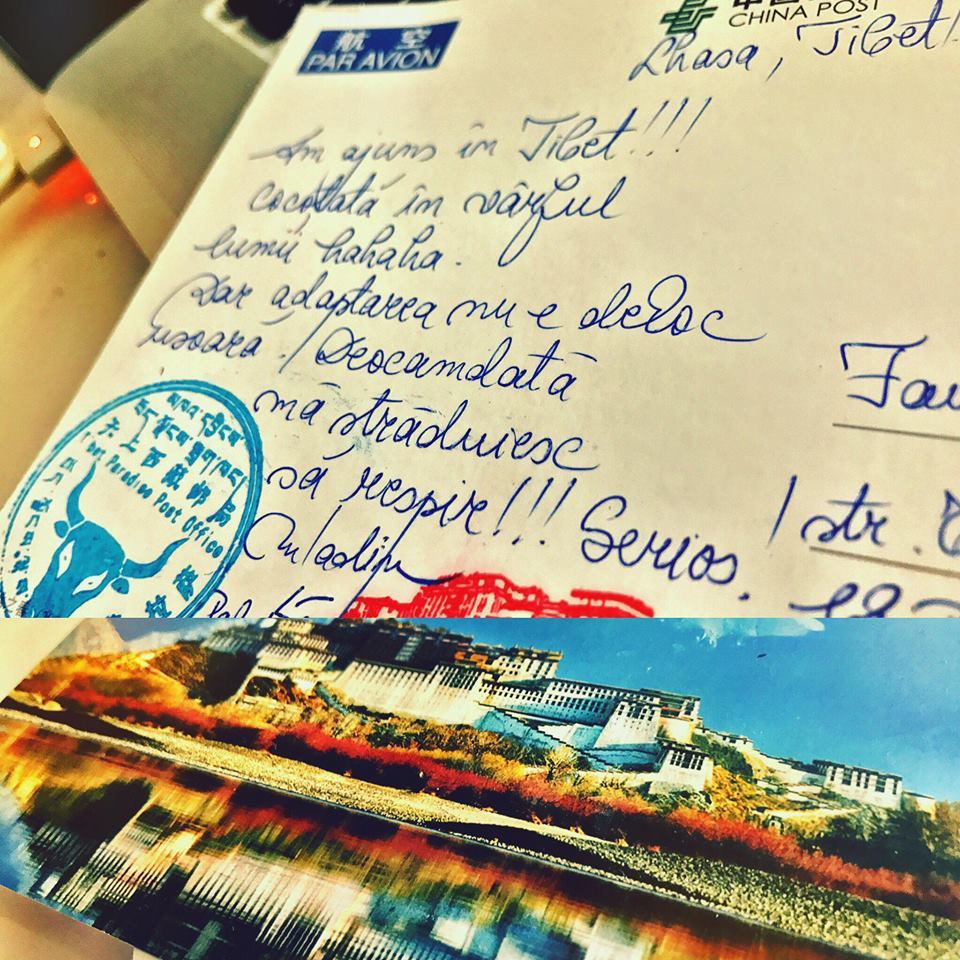 Pe vedere, Dana Mladin scrisese urmatorul mesaj: „Am ajuns in Tibet! Cocotata in varful lumii. Haha! Dar adaptarea nu e deloc usoara. Deocamdata ma straduiesc sa respir! Serios”. „E o minune ca a ajuns dupa doua luni si jumatate”, a comentat simpatica blondina la postarea lui Tudor de la Fly Project.