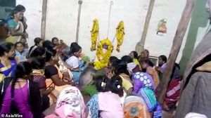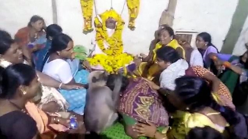 Mai multe femei s-au strâns într-un cerc pentru a o plânge pe Devendrappa Kammar, din Nargund, în sudul Indiei, o femeie care a murit la vârsta de 80 de ani. Maimuța este surprinsă în timp ce merge la una dintre ele pentru a o consola.