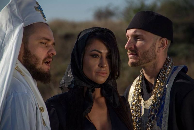 Un nou scandal este pe cale sa se declanseze, dupa ce doi artisti au imbracat haine preotesti, pe care le-au accesorizat in loc de cruci si icoane, cu lanturi grele de care atarna semnul dolarului, precum rapperii americani.