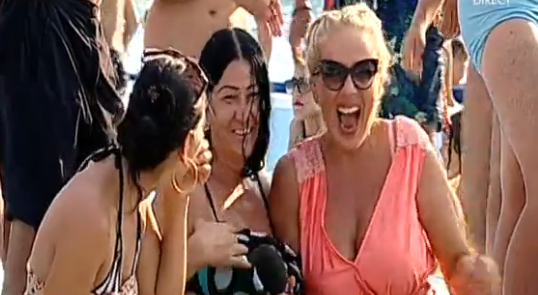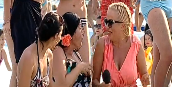 O prezentatoare de la noi si-a lasat invitata in sanul gol! A vrut sa vada cat s-a bronzat si... UPS!