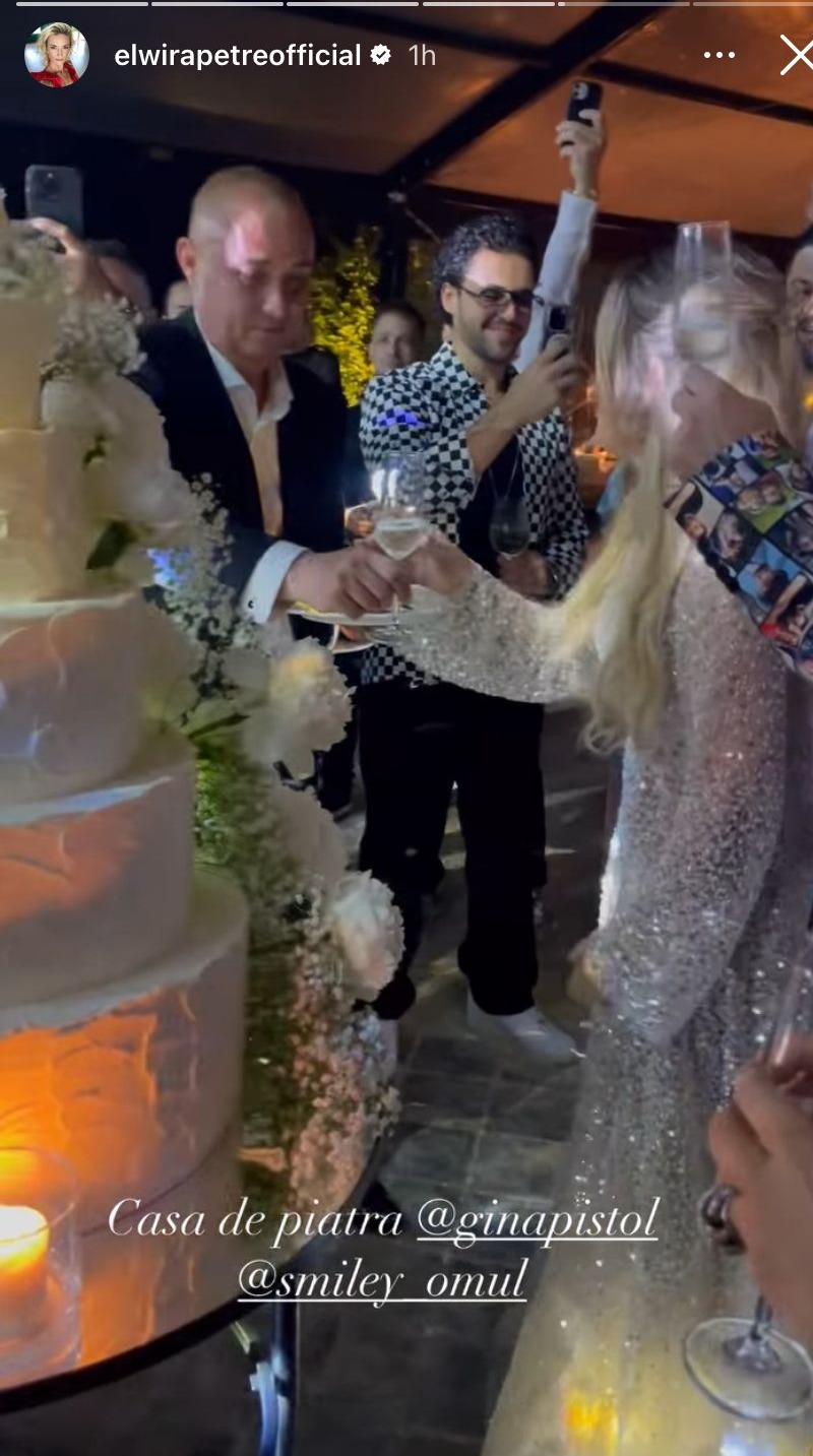 La fel ca toate celelalte elemente de la petrecere, și tortul a fost o adevărată bijuterie. A avut 5 etaje, alb în întregime, iar pe margine o ghirlandă de flori de sus până jos. A fost unul dintre cele mai emoționante și așteptate momente ale serii, fiind adus pe celebra melodie „ Love and marriage”, interpretată Frank Sinatra.