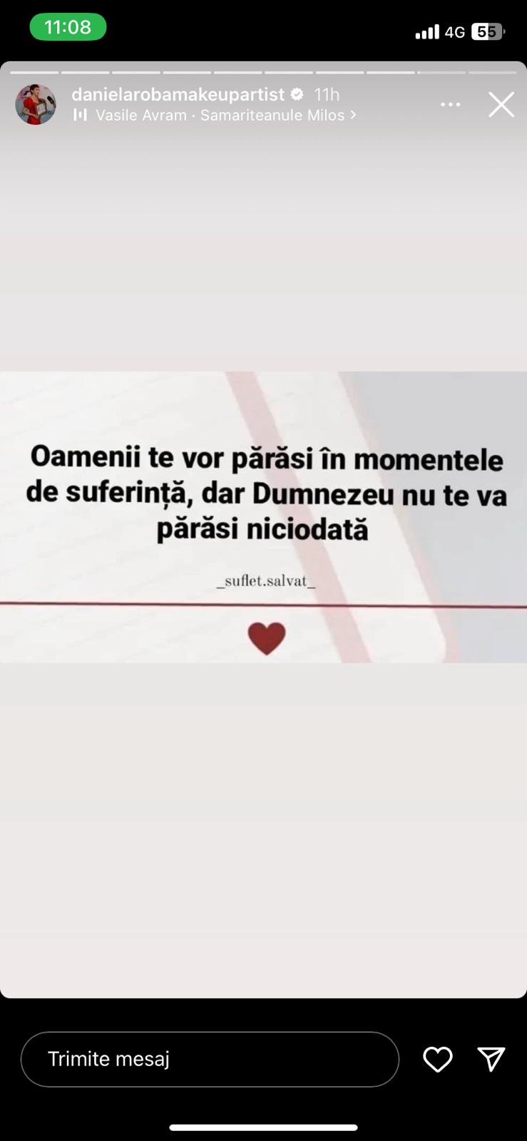 De asemenea, a găsit sprijin și susținere necondiționată în bărbatul care i-a fost alături într-un moment de cumpănă, Beni, începând o relație nouă cu acesta, în ciuda valului de critici pe care l-a primit în mediul online. Acum, Dana Roba a dat de înțeles din nou că ar avea parte de dezamăgiri în plan personal, după ce ar fi fost părăsită de unele persoane în momentele grele.