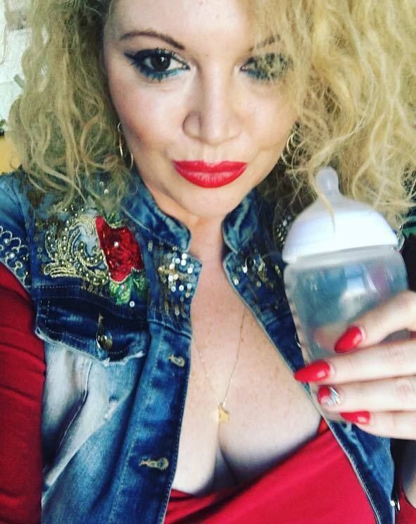 In imaginea respectiva, postata pe contul personal de socializare, Oana apare cu un biberon in mana.