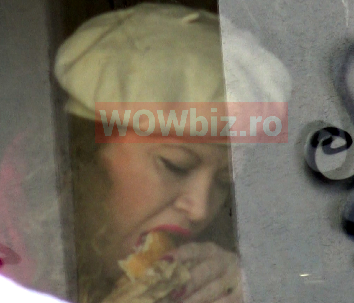 Deși era concentrată pe mâncare, nu am putut să nu observăm că în orice circumstanță vedeta este elegantă, cochetă și dichisită. Cu bereta albă la purtător, cu paltonul roz fistichiu și rujul de aceeași culoare, Oana Lis a ieșit să ia masa, singurică, în oraș. Din păcate, din nou, nu i-am putut smulge un zâmbet. În timp ce mânca, Oana Lis se uita doar în jos, probabil stătea pe telefon și nu schița nimic. Cine e pofticios, ar face bine să nu vizioneze imaginile. Sendvișul Oanei Lis îți lasă gura apă.
