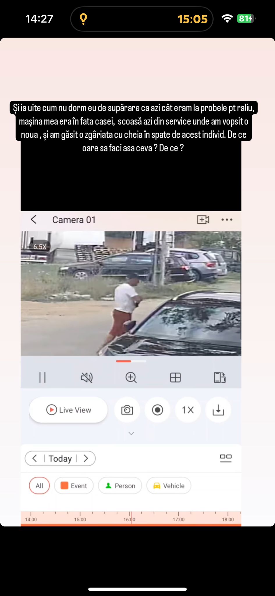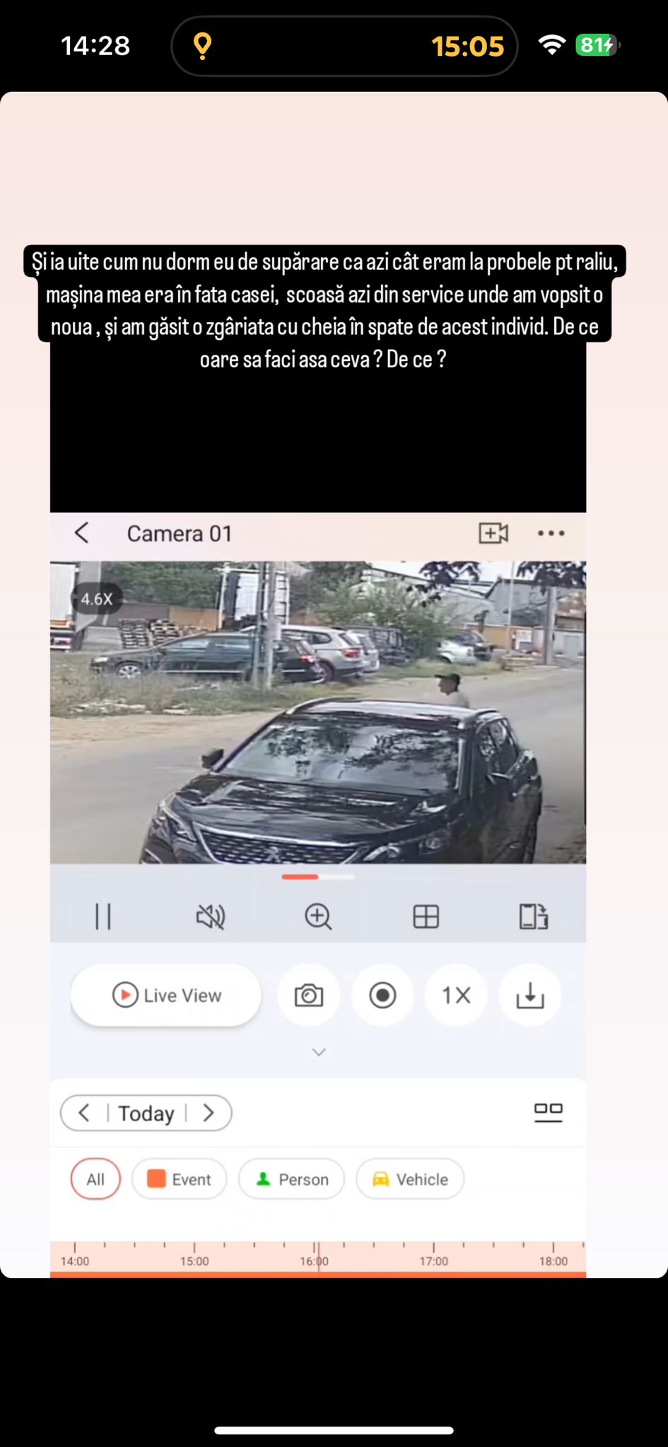 Astfel, Oana Roman le-a dezvăluit urmăritorilor din mediul online că nu a putut dormi toată noaptea din cauză că cineva i-a zgâriat mașina care era parcată în fața casei. Vedeta a putut identifica persoana care i-a făcut rău, dar nu își explică motivul pentru care bărbatul respectiv a făcut un astfel de gest.
