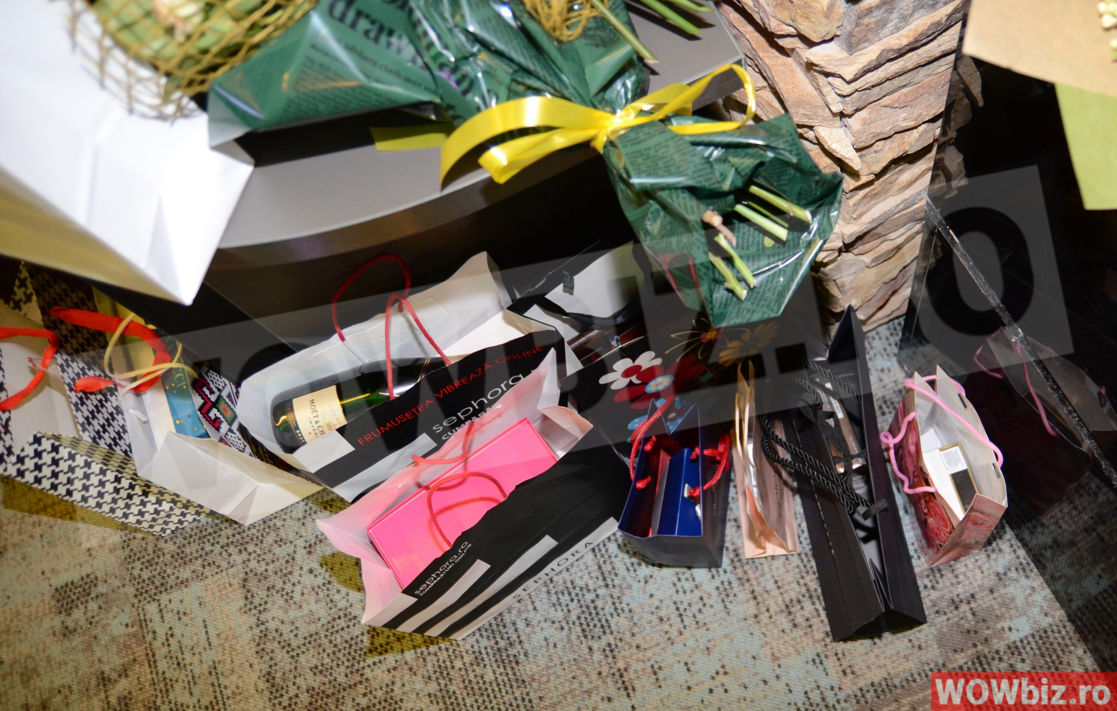 Ocupata cu primirea invitatilor ei, sarbatorita nu a avut timp sa desfaca pungutele de cadouri, ca sa vada ce a primit, insa, a avut grija sa le aseze intr-un loc retras.