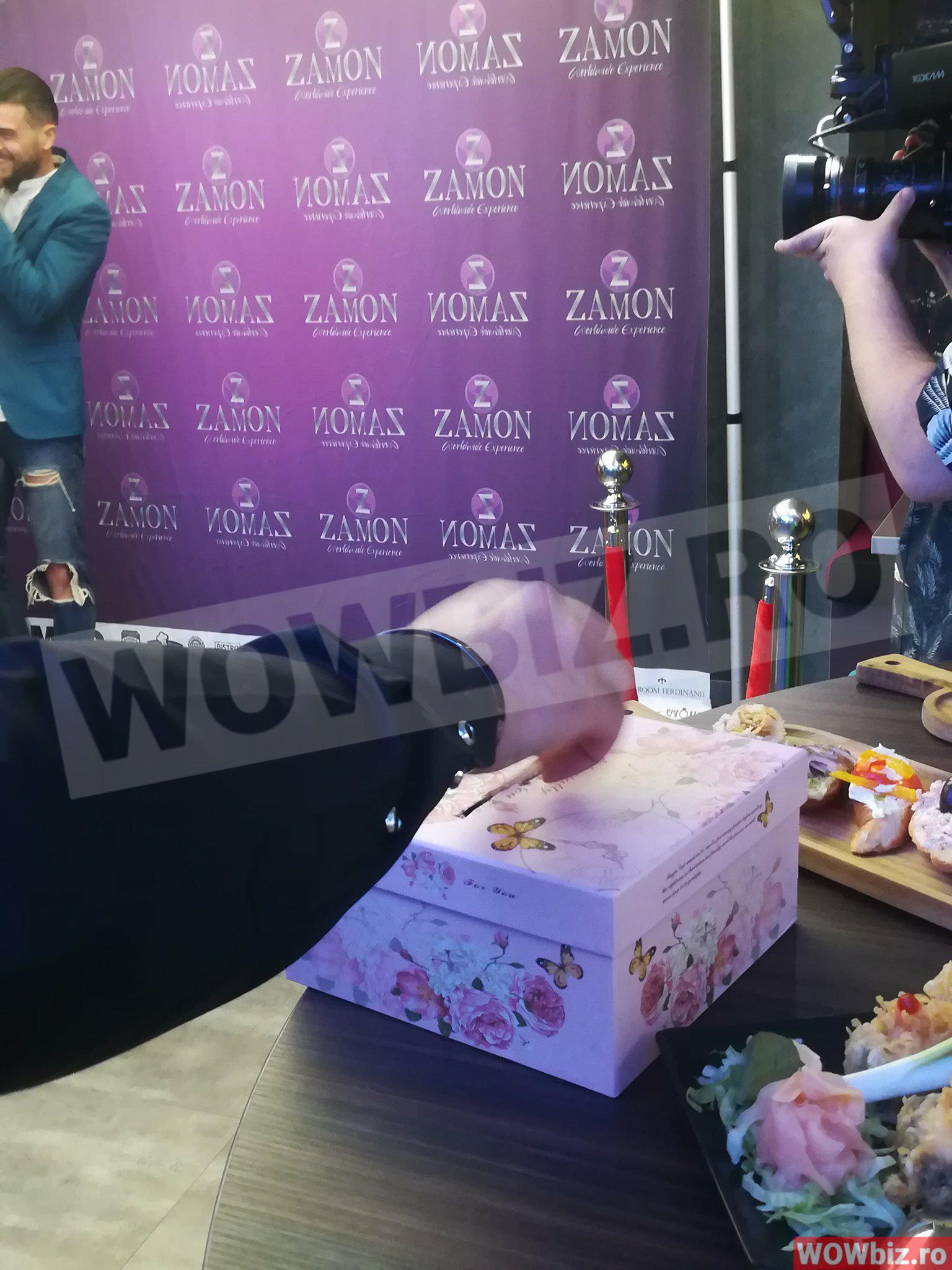 Un alt petrecaret i-a adus vedetei tv o punga voluminoasa cu alte 5-6 pachetele de cadouri, toate invelite in hartie frumoasa, iar deasupra, daca tot era rost de distractie, a pus o sticla de sampanie de super fite.