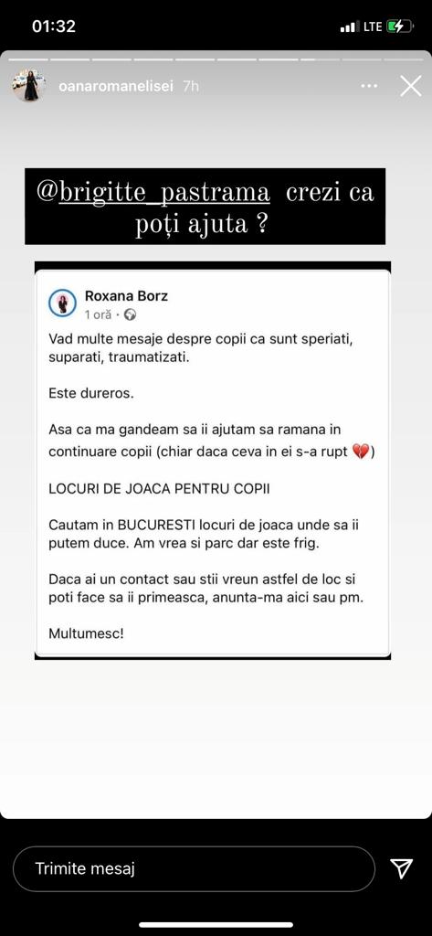 Oana Roman are prieteni în rândul vedetelor de la noi din țară pe care știe că se poate baza de fiecare dată, mai ales când vine în discuție asemenea probleme cu care se pot confrunta oamenii. De data aceasta, partenera de viață a lui Marius Elisei a cerut pe Instagram ajutorul lui Brigitte Pastramă.