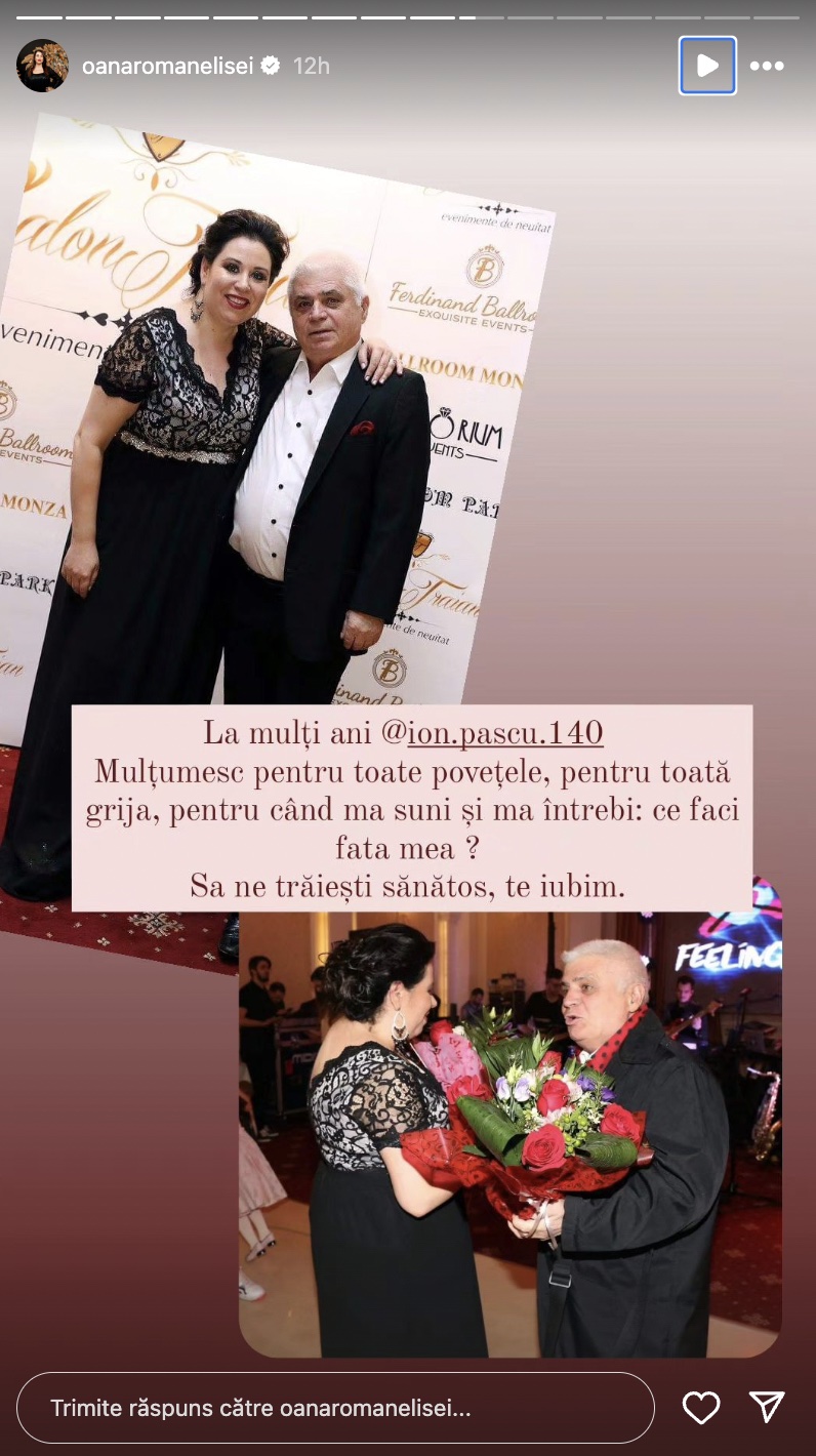 Oana Roman a scris un mesaj emoționant pentru Ionel Pascu în mediul online, mărturisindu-și iubirea și recunoștința pentru cel pe care îl consideră ca un tată, cu toate că nu există între ei legătura de sânge. Vedeta a precizat și faptul că fiica sa, Isa, vede în tatăl lui Pepe bunicul pe care și l-a dorit dintotdeauna.